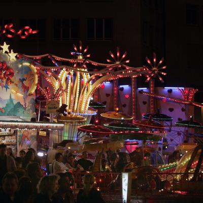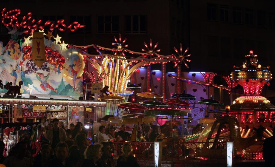 Der Rückweg führte vorbei an der Messe. Das elektrische Karussell war in vollem Betrieb. Eine blau gestrichne Karosse kam, zitternd und rasselnd, in majestätischer Fahrt aus dem Tunnel. An der Stirnseite des Wagens prangte ein Seeweibchen, Bruststück. Das schlug die Tschinelle. Rot waren die Backen, weiß ihre Brüste gelackt. Stolz flog sie dahin und zog einen ganzen Schwarm hochfarbig lackierter Wagen aus dem Tunnel. Die Dampfpfeife schrillte.